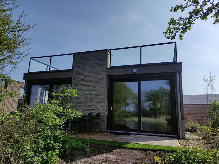 De woonkamer is voorzien van een zit- en eethoek met een sfeerhaard en een tv. De open keuken is onder andere voorzien van een inductiekookplaat, koel-vriescombinatie, magnetron, oven, vaatwasser, waterkoker en een filterkoffiezetapparaat. Er zijn twee slaapkamers met twee éénpersoonsbedden. In één van de slaapkamers zit een wastafel en een douche. Daarnaast is er nog een badkamer met een douche, wastafel en toilet. Buiten is er een gemeubileerd terras en een dakterras. Uw auto kunt u parkeren op de parkeerplaats tegenover het vakantiepark.