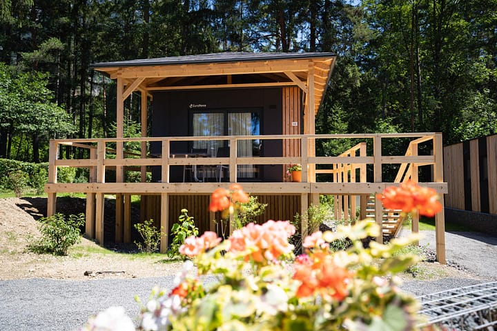 Edelweiss 2 is een 2-persoons tiny house met eeEdelweiss 2 is een vrijstaand en gelijkvloers chalet dat geschikt is voor 2 personen. Hier beleven gasten een romantische vakantie in de natuur, terwijl in je vakantiewoning een gezellige en gemoedelijke sfeer heerst. Er is een woon-slaapkamer aanwezig. De open keuken is volledig uitgerust met onder andere een vaatwasser, waterkoker en koffiezetapparaat. Het slaapgedeelte wordt door middel van een wandje gescheiden van het woongedeelte en heeft 1 tweepersoonsbed. Ook is er een luxe badkamer met douchecabine, wastafel en zwevend toilet. Op warme zomeravonden is het terras met zitgelegenheid de perfecte plek om de dag af te sluiten. Bij de Edelweiss 2 kun je 1 auto parkeren en er is gratis wifi.n moderne uitstraling.