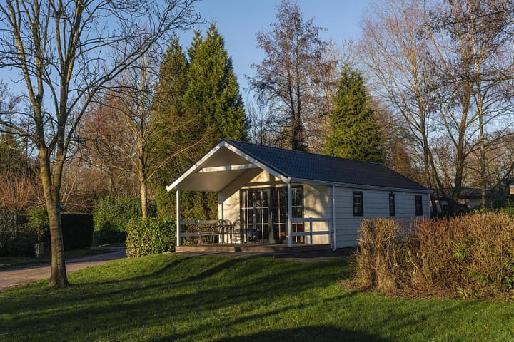 2-persoons lodge met overdekt terras gelegen in een mooi gedeelte van het park.