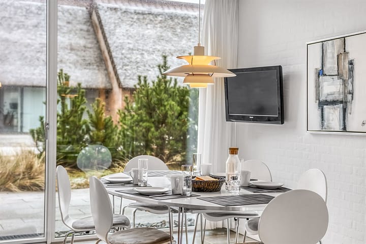Vakantieappartement. is geschikt voor 6 personen en 1 kinderen tot 3 jaar. De vakantiewoning heeft een oppervlakte van 112 m2, bestaat uit 2 verdiepingen, en is gebouwd in 2008. Het is niet toegestaan om huisdieren mee te nemen. Vloerverwarming in alle stenen vloeren. De vakantiewoning heft Wasmachine. Vriezer capaciteit van 6 liter. Er is daarnaast houtkachel.De vakantiewoning is gelegen op een 780 m² groot natuural grond. Afstand tot de zee 500 m.Afstand tot de waddenzee 600 m. Dichtstbijzijnde winkel 300 m. Er is een golfbaan op een afstand van 200 m. Bij de vakantiewoning hoort terras. Balkon. Barbecue. Parkeerplaats bij het huis.Er zijn in totaal 2 slaapkamers. De slaapplaatsen zijn als volgt verdeeld: 4 slaapplaatsen in tweepersoonsbedden. 2 slaapplaatsen in slaapbanken (tweepersoons). 2 van deze slaapplaatsen bevinden zich in de huiskamer. Verder is kinderbed ter beschikking.De keuken is uitgerust met koelkast Er zijn 4 keramische kookplaten, heteluchtoven, magnetron en vaatwasser. Er is 1 badkamer met douchehok en 1 toilet.. Er is vloerverwarming in 1 badkamer. In het vakantiehuis zijn 2 Smart-tv’s aanwezig. 1-3 deense zenders. 1-3 duitse zenders. Draadloos internet.