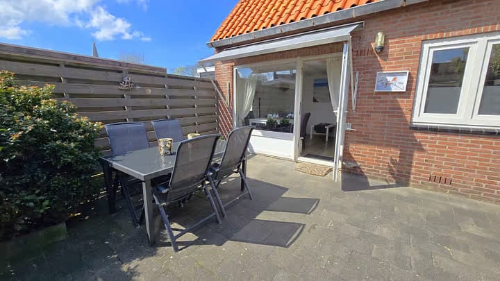 Op een steenworp afstand van het centrum ligt dit kleine huisje verborgen in de Schuitvlotstraat.Met een paar minuten lopen staat u in het centrum van Domburg met gezellige terrassen, leuke winkeltjes en goede restaurants. Ook het strand met diverse strandpaviljoens ligt op loopafstand. Dat maakt deze woning de ideale uitvalsbasis voor heerlijke stranddagen! Domburg is een goed startpunt om Walcheren op de fiets te ontdekken, bijvoorbeeld door de bossen richting Oostkapelle of over de zeedijk vlak langs het water richting Westkapelle. De historische steden Middelburg en Veere zijn ook een bezoekje waard en liggen op ongeveer 15 kilometer van de woning.Op de begane grond bevindt zich de woonkamer met eethoek met uitzicht op het terras. Aangrenzend is de keuken met combimagnetron en vier pits gaskookplaat. Via de hal komt u in een grote badkamer met bad en douche, toilet en wastafel.De verdieping bereikt u via een steile trap, waar twee kleine slaapkamers zich bevinden. De slaapkamer aan de voorzijde heeft twee eenpersoonsbedden. De slaapkamer aan de achterzijde heeft een eenpersoons bed.Op de overloop bevinden zich links en rechts twee kasten met voldoende bergruimte. Er is een kinderbedje aanwezig, wat in beide slaapkamers geplaatst kan worden. Met een traphekje kunt u de trap boven of beneden veilig afsluiten. Op het rustige en omsloten terras heeft u hele dag zon. Er is gelegenheid om fietsen mee te nemen en op te laden aan de 3 contactenpunten op het terras. Uw hond is welkom en kan vrij rondlopen op dit terras.U kunt tijdens uw verblijf gratis parkeren.