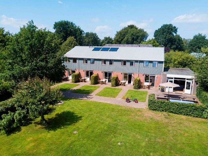 Deze gezellige groepsaccommodatie bevindt zich op een prachtige locatie in de natuurrijke provincie Drenthe. De groepsaccommodatie heeft plaats voor maximaal 20 personen en is uitermate geschikt voor een familieweekend, vriendenweekend, schoolreis, vakantieweek of bedrijfsuitje. Via de openslaande tuindeuren komt u op het terras waar u ’s zomers heerlijk kunt genieten in het zonnetje. Verder vindt u op het terrein een kinderboerderij en een groot speelveld met beachvolleybalveld en speeltoestellen. In de omgeving kunt u goed wandelen en fietsen door de bossen. Tevens beschikt u over een gratis internet verbinding.Deze gezellige groepsaccommodatie, gelegen op één van de mooiste plekjes van Drenthe, is geschikt voor maximaal 20 personen. De accommodatie bestaat uit vijf appartementen, ideaal voor groepen die prijs stellen op privacy en comfort. Eén van de hoekappartementen beschikt over een grote woonkamer/ keuken, zo is er voldoende ruimte om met zijn allen te eten en te recreëren. De keuken beschikt over een filter koffiezetapparaat. Tevens beschikt u over gratis internetverbinding.In totaal zijn er vijf slaapkamers met drie eenpersoons Boxpringbedden, drie slaapkamers met twee eenpersoons Boxspringbedden (90 x 200) en drie tweepersoons bedstedes (140 x 200). Er is één slaapkamer met badkamer op de begane grond, de overige vier slaapkamers op de verdieping. Alle appartementen hebben een eigen badkamer voorzien van douche, toilet en wastafel.Via de openslaande tuindeuren komt u op het terras met tuinmeubelen en in de tuin. Op het terrein bevindt zich een kinderboerderij en een groot speelveld met beachvolleybalveld en speeltoestellen. De kinderen zullen zich hier uitstekend vermaken.