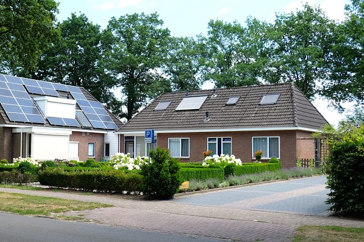 Het voorste deel van de woning is het woonhuis, het aangebouwde deel is het gastenverblijf. Aan de rechterkant van de accommodatie is een oprit waar u uw auto kunt parkeren. Naast de grote tuin aan de voorkant van het huis, bevindt zich aan de achterkant een omheinde tuin met terras, een zandbak en een speelhuisje. De accommodatie biedt een fraai uitzicht op de landerijen en de uitgestrekte heide en bossen. Vaak kunt u daarbij heerlijk genieten van een schitterende zonsondergang en de mysterieuze “witte wieven”, dwalend over de heide. Het huis wordt vooral bezocht door familiegroepen en vriendengroepen, zoals wandel- en fietsgroepen.