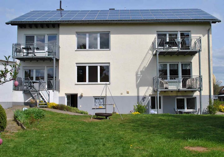 Dit mooie vierpersoons appartement ligt in het idyllische Eifeldorpje Oberscheidweiler. Het kleine dorp ligt tussen Koblenz en Trier op 400 m boven de zeespiegel in de zogenaamde Vulkaaneifel. Het appartement bevindt zich op de bovenverdieping van een huis met in totaal vier appartementen. Vanuit het appartement en het balkon heb je een fantastisch landelijk uitzicht over de omgeving. In de directe omgeving is het heerlijk wandelen of fietsen. Het bos ligt op 200 meter van het huis. Op korte afstand van uw vakantiehuis kunt u heerlijke dagtochten maken, bijvoorbeeld naar de Moezel, naar de Vulkaan Maare, naar Cochem, Bernkastel, Luxemburg, of naar de Nürburgring. Een heuze geiser vindt je in het dorp Wallenborn. In de nabije omgeving zijn er ook diverse mooie kastelen te bezoeken en te bewonderen. Kortom genoeg te doen!Dit appartement ligt op de eerste verdieping en heeft een oppervlakte van 80m² en een balkon. In de grote woonkamer is er een zithoek, satelliet-tv, radio, gratis WiFi. De keuken heeft onder andere een eethoek, vaatwasser, magnetron, filter koffiezetapparaat, waterkoker, keramische kookplaat met oven, koelkast en een vriezer. Er zijn twee slaapkamers, elk met een tweepersoonsbed, 1.80 x 2.00 m en 1.60 x 2.00 m, en een badkamer met een douche, toilet, wastafel, spiegel en een opbergkast. De bank in de woonkamer kan eventueel gebruikt worden als extra slaapgelegenheid. Vanuit het appartement heeft u directe toegang tot het grote balkon met tuinmeubelen.