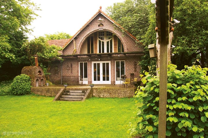 Het woonhuis heeft een entree, een ruime woonkamer met open haard en een keuken. Er zijn 4 slaapkamers op de begane grond. Voor gezelschappen van 11-25 personen is er op de eerste verdieping een fraaie slaapzaal met 15 enkele bedden. Het achterhuis herbergt de ruimte voor creatie en recreatie met open haard en een piano, een geluidsinstallatie en een paar schildersezels. Voorts nog een keuken, een entree, douche en toilet. Deze ruimte is beschikbaar voor gezelschappen groter dan 10 personen, alsook voor vergaderingen, trainingen, etc. Het hele huis is voorzien van cv en dubbel glas, de ruimte voor creatie heeft ook vloerverwarming. Op de binnenplaats bevindt zich een overdekt terras met mozaïekvloeren en antieke teakhouten banken. Achter de hoeve ligt ook een statig terras, een groot grasveld, een jeu de boulesbaan, een muziekkapel en een tuinpaviljoen. Daarachter ligt een omheinde hoogstamboomgaard met soms een paar schaapjes.