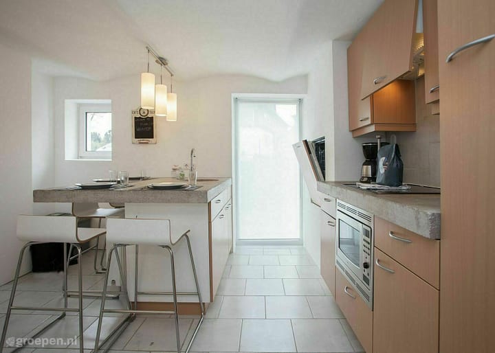 Gezellig samen vakantie vieren! Dit vakantiehuis bestaat uit 3 appartementen: 2 x 4 persoonsappartement en 1x 6 persoonsappartement. Beide 4 persoonsappartementen hebben een slaapkamer met een 2-persoonsbed, badkamer en in de woonkamer een slaapbank voor 2 personen. Het 6 persoonsappartement heeft twee slaapkamers en twee badkamers. Waarvan 1 slaapkamer met een 2-persoonsbed en badkamer en-suite met douche en wastafel.  De tweede slaapkamer heeft een stapelbed. De 2e badkamer heeft een wastafel, toilet, douche en ligbad. In de woonkamer staat een twee persoons slaapbank en een flatscreen. Er is wifi, een radio, dvd en cd speler.  Ook zijn er drie aparte toiletten. Er is in totaal ruimte voor maximaal veertien personen. Er zijn in totaal 3 keuken uitgerust met combimagnetron, oven, tosti-apparaat, vaatwasser ( in 2 keukens), koelkast met vriesvakje en een vriezer. Een wasmachine, wasdroger, haardroger en stofzuiger zijn beschikbaar. Ook zijn er een kinderstoel en kinderbed. De tuin heeft een terras met tuinmeubelen en je kunt gebruik maken van de barbecue. De accommodatie beschikt over drie parkeerplaatsen. In de berging kun je fietsen en ski’s kwijt. Huisdieren zijn welkom in deze woning.