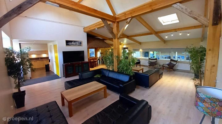 Deze groepsaccommodatie heeft een compleet ingerichte keuken voor zelfverzorging. In de woon- eetkamer is een ruime zithoek met smart TV (waarbij je zelf je eigen apparaten kunt aansluiten als je meer wilt dan alleen digitenne TV of radio). Het eetgedeelte is voorzien van voldoende tafels en stoelen. Tevens is er een eigen bar. Op de begane grond zijn vier slaapkamers met eigen sanitair en 1 slaapkamer met een badkamer buiten de kamer. In het seizoen kan er eventueel ook nog gebruik worden gemaakt van het sanitair op de camping. Alle bedden zijn voorzien van dekbedden en kussens. Door het hele gebouw is centrale verwarming aanwezig. Op het terras zijn tafels en stoelen aanwezig en op de camping zijn diverse sportvelden voor zowel voet- als volleybal. Tevens is er een cafetaria, een recreatieruimte, trampolines en een overdekt zwembad (verwarmd) en 2 peuterbaden.
