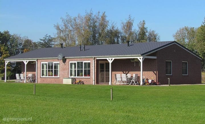 De groepsaccommodatie is ruim opgezet en alles bevindt zich op de begane grond. Het appartement beschikt over een woonkamer en prima keuken. Deze is van alle gemakken voorzien. In de zitkamer bevinden zich een eethoek en zithoek met televisie (schotel). De plavuizenvloer met vloerverwarming en de gashaard maken het allemaal behaaglijk. De accommodatie is goed toegankelijk, er zijn geen drempels. Er is een overdekt terras met tuinmeubelen en er zijn speelattributen voor kinderen. Het terras grenst aan de woonkamer en is via een schuifpui te bereiken. In de accommodatie zijn 3 tweepersoons-slaapkamers en in de woonkamer een tweepersoons-slaapbank, maar indien gewenst kunnen er ook stretchbedden in de slaapkamer bijgezet worden. Op twee slaapkamers is een wastafel met warm/koud water. In de accommodatie bevindt zich een badkamer met ligbad en aparte douche, wastafel en toilet. Een extra toilet is in de hal. Rondom de groepsaccommodatie heb je alle ruimte voor verschillende sportieve activiteiten.
