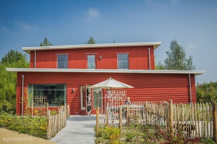 Vriendelijke groepsaccommodatie in Scandinavische stijl voor 10 personen, met hotelkamers. Op inspirerend wandel -, doe- en recreatiepark. Ook in combinatie met andere groepshuizen.