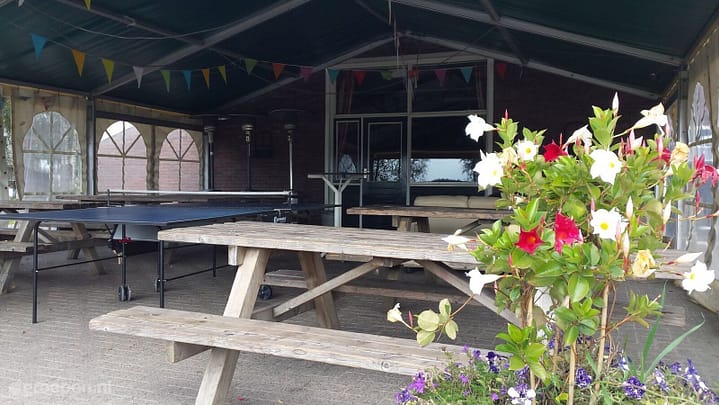 De groepsaccommodatie is verdeeld in een verblijfsruimte met zit- en eetgedeelte, mooie bar en een knusse zithoek. Alle ruimtes zijn verwarmd door centrale verwarming. Ook is de accommodatie voorzien van digitale tv en draadloos internet. Je beschikt over een ruime keuken met alle benodigde apparatuur en vaatwasser. Afhankelijk van het aantal personen heb je beschikking over 2 slaapzalen die zich in het centrale gebouw bevinden. Aangrenzend aan de groepsaccommodatie ligt een groot en overdekt terras, met zitplaatsen een plek om te barbecueën en uitzicht op het speelveld.