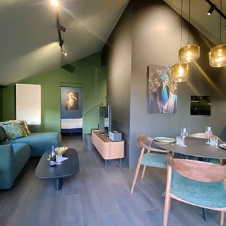 In een prachtig bosrijke omgeving, aan de waterkant ligt deze prachtige 12 persoons groepsaccommodatie, met een privé zwembad en buitenspa, op Résidence Lichtenvoorde. Tijdens uw verblijf zult u uitgebreid kunnen genieten van de prachtige natuur. U kunt de geur van de bakker om de hoek ruiken en snuift de cultuur onder het genot van een drankje op één van de sfeervolle terrassen. De echte lichtpunten zijn de combinatie van de nostalgie en de rust op het vakantiepark. Het park kent voldoende faciliteiten om u van een zorgeloze vakantie te voorzien.De woonkamer is stijlvol ingericht met luxe meubilair, smart-tv en een sfeerhaard. De eettafel en zithoek bieden beide ruimte voor het hele gezelschap. De open keuken is compleet ingericht met onder andere een vaatwasser, koelkast, vriezer, vijfpits kookstel, combimagnetron, Nespresso koffiezetapparaat en een waterkoker. Er zijn zes slaapkamers met elk twee éénpersoonsbedden, drie badkamers met een douche, toilet en wastafel en op de begane grond nog een apart toilet. Rondom de villa zijn meerdere plekken om heerlijk in de buitenlucht te relaxen: in het privé zwembad (verwarmd tot 20-21 graden) of het buitenspa. Er is plek voor drie auto’s bij de woning.