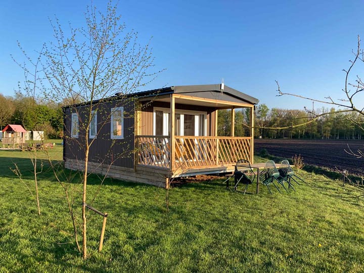 Deze sfeervolle vakantiewoning ligt aan de rand van Schoonloo in het Nationaal Beek- en Esdorpen Landschap Drentse Aa, een prachtig natuurgebied met bossen, heide, vennen en meren. Vanuit het terrein loopt u direct de natuur in, ideaal voor wandel- en fietsroutes. Op 300 meter ligt een rustige zwemplas. Kinderen kunnen zich vermaken met schommels, skelters, een dierenweide en meer. Er is een overdekte kampvuurplaats (hout tegen vergoeding), broodjesservice, en op zaterdag worden gegrilde kippen aangeboden. Ook is er een bibliotheek met boeken en spelletjes. Fietsen huren kan bij Kamies Fietenverhuur in Valthe. Op zoek naar een unieke manier om volledig tot rust te komen? Huur een sfeervolle houtgestookte hottub! (€ 60.00 p/d) Geniet van het warme water, het knisperende vuur en de serene sfeer – perfect voor een avondje ontspanning onder de sterren.Compleet ingerichte woonkamer met TV en een keuken met een vaatwasser, vierpits kookstel, koelkast, koffieapparaat en een waterkoker. Er zijn twee slaapkamers, één met een tweepersoonsbed en een slaapkamer met twee éénpersoonsbedden. Mogelijkheid voor plaatsen bijzettentje naast de lodges (voor de kids) Badkamer met een douche en een wastafel, een aparte WC. Overdekte veranda. Schuur om fietsen in op te bergen. Er is een hottub op het terrein aanwezig welke ter plaatse gereserveerd kan worden (dit is op basis van beschikbaarheid).