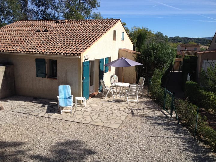 Het vakantie huis in Vidauban is in een rustig gelegen tegen een groene heuvel.