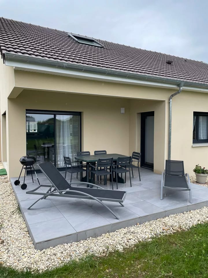 De ingang leidt direct naar de grote woonkamer met keuken, zithoek en eethoek. De 2 slaapkamers zijn toegankelijk op de begane grond, net als het hele huis. De badkamer en het toilet zijn apart.