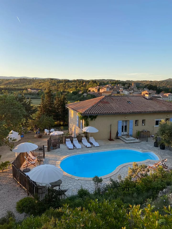 NOUS ligt op een heuvel tegen de prachtige achtergrond van de bergen, waardoor je een adembenemend uitzicht hebt op het historische dorp Agel – de thuisbasis en het hart van dit ultieme vakantieverblijf.
