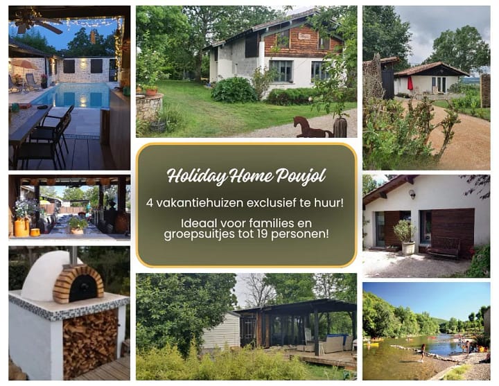 Even weg uit de dagelijkse drukte? Bij Holiday Home Poujol kunt u met familie, vrienden of collega’s genieten van een unieke plek waar ontspanning en inspiratie centraal staan. Op ons terrein staan vier gezellig en stijlvol ingerichte huisjes, elk met eigen voorzieningen en een privéterras. Hierdoor heeft u alle privacy wanneer u daar behoefte aan heeft, terwijl u toch samen bent op één locatie.
