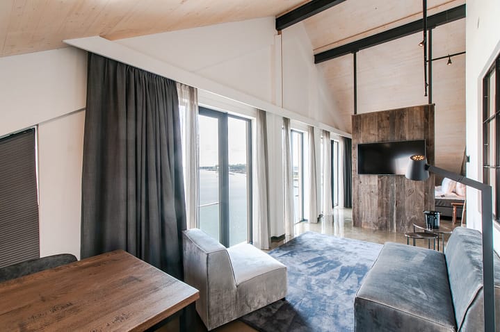 Oesterdam Suite Royal 2 is een zeer ruime en stijlvol ingerichte suite voor 2 personen met schitterend uitzicht op het water en zeer geschikt als bruidssuite