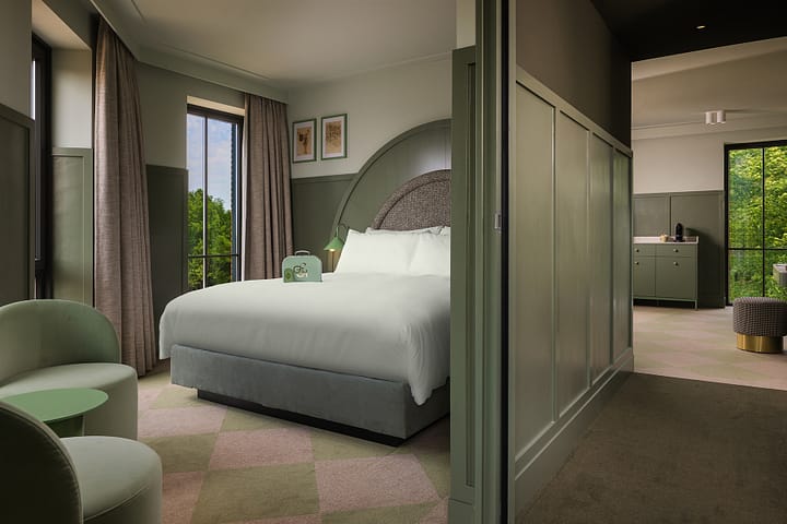 Ontdek subtiele Efteling-details en een kleurthema geïnspireerd op het uitzicht van het Grand Hotel. De unieke suite is voorzien van een eigen woonkamer, een kamer met een luxe 2-persoonsbed en nog een aparte slaapkamer met twee speelse stapelbedden.
