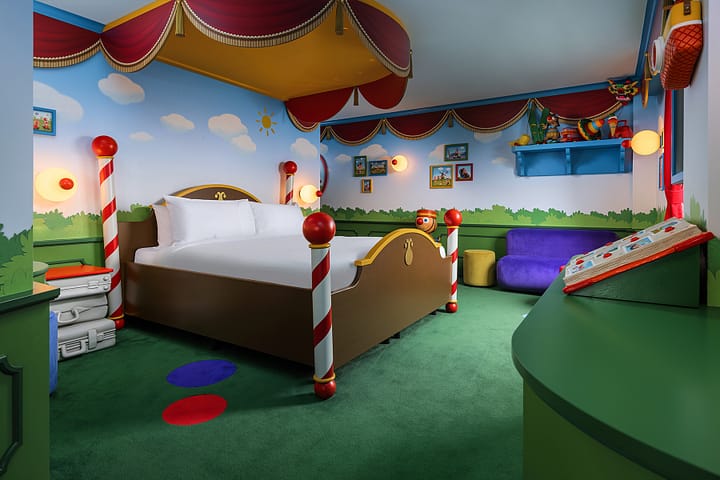 De kleurrijke Jokie & Jet Suite ligt in één van torens van het Efteling Wonder Hotel. Deze themasuite is maar liefst 53m2 groot en biedt plaats aan vijf personen.