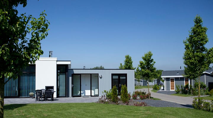 Deze elegante vakantiewoning is de Cube Exclusif 4. Dat de woning onder architectuur is gebouwd, zie je onder andere terug in de 3 meter hoge plafonds, de grote raampartijen en de slimme indeling. Het vrijstaande chalet is geschikt voor 4 personen en heeft een ruime woonkamer met zithoek en televisie. De keuken is onder andere uitgerust met een vaatwasser, combimagnetron, waterkoker en koffiezetapparaat (filter of Senseo). In de Cube Exclusif 4 vind je 2 slaapkamers, 1 slaapkamer met een tweepersoonsbed en 1 slaapkamer met 2 eenpersoonsbedden. Verder is er een badkamer aanwezig met een douche en toilet. Buiten bevindt zich een ruim terras met tuinmeubilair. Bij deze vakantiewoning is parkeerplek voor 1 auto en er is gratis WiFi.
