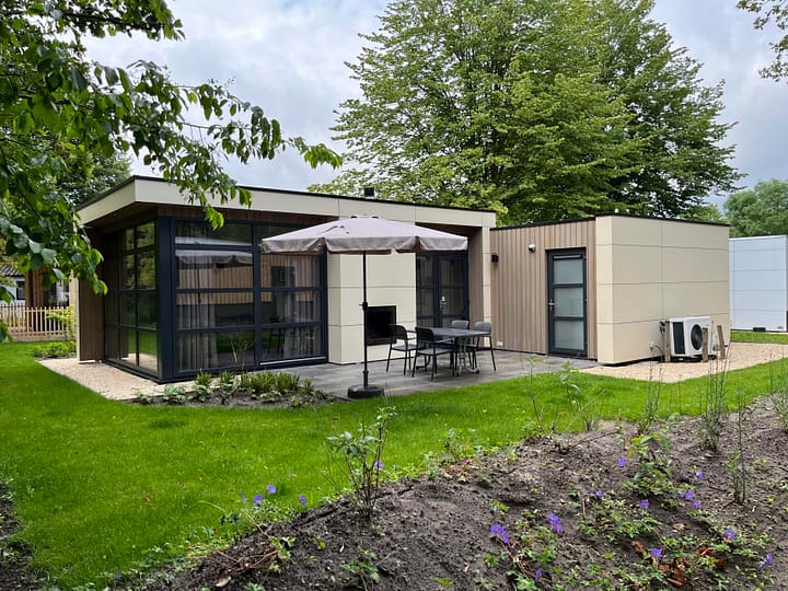 De L-Cube 4 heeft een moderne en robuuste uitstraling en is warm ingericht. Het vrijstaande, gelijkvloerse chalet is gebouwd in een L-vorm en is geschikt voor 4 personen. Door het hoge plafond en de grote ramen is de woning licht en ruim. Het woongedeelte heeft een zithoek, televisie en een sfeerhaard. De open keuken is onder andere uitgerust met een koel-vriescombinatie, vaatwasser, combimagnetron en een Senseo. In totaal heeft deze vakantiewoning 2 slaapkamers met elk 2 eenpersoons boxsprings. De luxe badkamer heeft een ruime inloopdouche, wastafel en toilet. Via de schuifpui in de woonkamer kom je op het zonneterras met tuinmeubilair. Bij de woning kun je 1 auto parkeren en er is gratis WiFi.