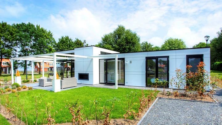 De Cube Maximaal is een moderne en duurzame woning met zijn warmtepomp en zonnepanelen. De woning is gelijkvloers en geschikt voor 6 personen. De lichte woonruimte beschikt over een gezellige zithoek, een eettafel met stoelen en een keuken met onder andere een filter koffiezetapparaat, combimagnetron en vaatwasser. Het chalet heeft 3 slaapkamers, waarvan 1 met een tweepersoonsbed, één met 2 eenpersoonsbedden en één met een stapelbed. Er is een badkamer met een inloopdouche en een wastafel. Het toilet is apart van de badkamer. Buiten vind je een gemeubileerd terras. Je kunt 1 auto parkeren bij het chalet en je kunt gratis verbinding maken met de Wi-Fi.