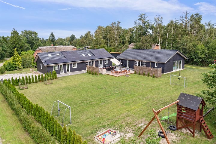 Vakantiehuis is geschikt voor 16 personen. 5 van de slaapplaatsen is alleen geschikt voor grotere kinderen (4-11 jaar). De vakantiewoning heeft een oppervlakte van 280 m2 en is gebouwd in 2019. Het is niet toegestaan om huisdieren mee te nemen. De vakantiewoning is uitgerust met 2 energiezuinige lucht-naar-lucht-warmtepompen. Er is Zonne-energie. Er is vloerverwarming in het hele huis. De vakantiewoning heft Wasmachine. Wasdroge. Vriezer capaciteit van 100 liter. Er is daarnaast houtkachel. Voor de kleintjes 1 stukken Kinderstoel.De vakantiewoning is gelegen op een 2099 m² groot natuural grond. Afstand tot de zee 900 m. Dichtstbijzijnde winkel 2000 m. Bij de vakantiewoning hoort terras. Schommel. Zandbak. Voetbaldoel.Vuurplaats. Er is een overdekte, gemetselde barbecue beschikbaar. Parkeerplaats bij het huis.Het binnenzwembad biedt de gelegenheid om heerlijk te spelen en gezellig samen te zijn. Het zwembad is 3,5 m breed, 8,5 m lang en tot 1,45 m diep. Het water heeft een temperatuur tussen de 24 en 28 °C. Het binnenzwembad heeft een tegenstroominstallatie. Er is vloerverwarming in het zwembadgebied.Tafelvoetbal. Er zijn in totaal 5 slaapkamers. De slaapplaatsen zijn als volgt verdeeld: 4 slaapplaatsen in tweepersoonsbedden. 11 slaapplaatsen in eenpersoonsbedden. 1 slaapplaats op matras.- 5 van de slaapplaatsen bevinden zich op de zolder van het huis in stapelbedden, en 1 slaapplaats bevindt zich op de zolder in een van de slaapkamers. Verder sijn ook 2 stukken kinderbed ter beschikking.De keuken is uitgerust met 2 koelkasten Er is 6 inductiekookplaten, heteluchtoven, magnetron en vaatwasser. Er is 3 badkamers met douchehok en 3 toiletten De sauna biedt de gelegenheid tot ontspanning.Er is de mogelijkheid tot ontspanning in zowel de indoor stilstaande water spa voor 6 personen als de indoor spa met doorstroom voor 2 personen. Daarnaast is er een outdoor hot tub voor 6 personen waar je kunt genieten van wellness onder de open hemel. In de vakantiewoning is aanwezig 1 smart-tv. Playstation4. 1-3 deense zenders. 1-3 sweedse zenders. 1-3 noorse zenders. 1-3 duitse zenders. Draadloos internet.