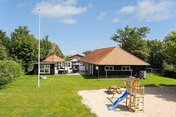 Voormalige boerderij. is geschikt voor 20 personen en 2 kinderen tot 3 jaar. 4 van de slaapplaatsen is alleen geschikt voor grotere kinderen (4-11 jaar). De vakantiewoning heeft een oppervlakte van 380 m2 en is gebouwd in 1997. In 2022 is de vakantiewoning volledig renoveerd. Het is niet toegestaan om huisdieren mee te nemen. De vakantiewoning is uitgerust met energiezuinige lucht-naar-water-warmtepomp. Er is vloerverwarming in de woonkamer. Vloerverwarming in de hal. Vloerverwarming in de gang. De vakantiewoning heft Wasmachine. Vloerverwarming in de woonkamer. Wasdroge. Vriezer capaciteit van 200 liter. Voor de kleintjes 2 stukken Kinderstoel. Verschoningstafel.De vakantiewoning is gelegen op een 4500 m² groot natuural grond. De grond is omheind. Afstand tot de zee 17000 m.Afstand tot de waddenzee 3000 m. Dichtstbijzijnde winkel 4000 m. Bij de vakantiewoning hoort 200 m² terras. Daarnaast is er een 32 m² groot overdekt terras. Schommel. Zandbak. Speeltoren. Glijbaan. Voetbaldoel.Vuurplaats. U kunt buiten een maaltijd bereiden in de buitenkeuken. Barbecue. Het huis heeft een stopcontact voor het opladen van een elektrische auto. Oplaadstekker type 2. Parkeerplaats bij het huis.Het binnenzwembad biedt de gelegenheid om heerlijk te spelen en gezellig samen te zijn. Het zwembad is 3 m breed, 6 m lang en tot 1,35 m diep. Het water heeft een temperatuur tussen de 24 en 28 °C. Er is vloerverwarming in het zwembadgebied.Activiteitenruimte. Biljart. Pooltafe. Dart. Er zijn in totaal 8 slaapkamers. De slaapplaatsen zijn als volgt verdeeld: 16 slaapplaatsen in tweepersoonsbedden. 4 slaapplaatsen in stapelbedden. Verder sijn ook 2 stukken kinderbed ter beschikking.De keuken is uitgerust met 2 koelkasten Er zijn 8 keramische kookplaten, heteluchtoven, magnetron en vaatwasser. Vloerverwarming in de keuken. Er is 3 badkamers met douchehok en 3 toiletten. Er is vloerverwarming in 3 van de badkamers. De infraroodsauna biedt de gelegenheid tot ontspanning.Het binnenbubbelbad (vulwater) biedt ontspanning aan 2 personen.Het buiten hot tub biedt ontspanning aan 5 personen.In de vakantiewoning is aanwezig 2 televisies.2 Smart-tv.Tv via streaming. Radio.1 Bluetooth-speaker. Tenminste 4 deense zenders. 1-3 sweedse zenders. 1-3 noorse zenders. Tenminste 4 duitse zenders. Draadloos internet.