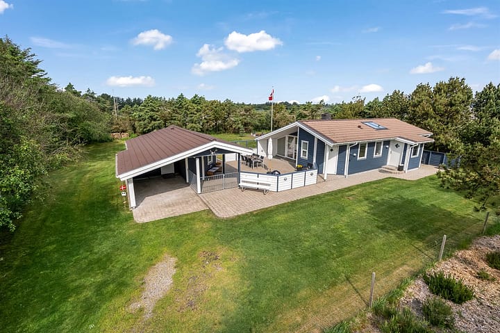 Vakantiehuis is geschikt voor 6 personen en 1 kinderen tot 3 jaar. De vakantiewoning heeft een oppervlakte van 89 m2 en is gebouwd in 1978. In 2004 ondergingen de vakantiewoning een gedeeltelijke renovatie. Het is toegestaan om 2 huisdieren mee te nemen. De vakantiewoning is uitgerust met warmtepomp. Er is vloerverwarming in de woonkamer. De vakantiewoning heft Wasmachine. Vriezer capaciteit van 80 liter. Er is daarnaast houtkachel. Voor de kleintjes 1 stukken Kinderstoel.De vakantiewoning is gelegen op een 1480 m² groot natuural grond. Afstand tot de zee 750 m. Dichtstbijzijnde winkel 300 m. Bij de vakantiewoning hoort 40 m² terras. Daarnaast is er een 8 m² groot overdekt terras. Waarvan in totaal 30 m² beschut terras. Schommel. Carport ter beschikking.Er zijn in totaal 3 slaapkamers. De slaapplaatsen zijn als volgt verdeeld: 4 slaapplaatsen in tweepersoonsbedden. 2 slaapplaatsen in stapelbed. Verder is kinderbed ter beschikking.De keuken is uitgerust met koelkast Er is 4 inductiekookplaten, heteluchtoven, magnetron en vaatwasser. Er is 2 badkamers met douchehok en 2 toiletten. Er is vloerverwarming in 2 van de badkamers.Het binnenbubbelbad (vulwater) biedt ontspanning aan 2 personen.In de vakantiewoning is aanwezig televisie. DVD-speler. Stereo-installatie. CD-speler. Tenminste 4 deense zenders. 1-3 sweedse zenders. 1-3 noorse zenders. 1-3 duitse zenders. Draadloos internet.