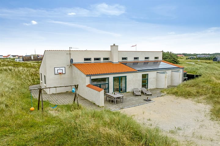 Vakantiehuis is geschikt voor 9 personen. De vakantiewoning heeft een oppervlakte van 172 m2 en is gebouwd in 1990. In 2015 is de vakantiewoning volledig renoveerd. Het is toegestaan om 2 huisdieren mee te nemen. De vakantiewoning is uitgerust met een energiezuinige lucht-naar-lucht-warmtepomp. De vakantiewoning heft Wasmachine. Wasdroge. Vriezer capaciteit van 60 liter. Er is daarnaast houtkachel. Voor de kleintjes 1 stukken Kinderstoel.De vakantiewoning is gelegen op een 1200 m² groot natuural grond. Afstand tot de zee 400 m. Dichtstbijzijnde winkel 1000 m. Er is een golfbaan op een afstand van 4000 m. Bij de vakantiewoning hoort terras. Schommel. Zandbak.Beachvolleybal. Barbecue. Het huis heeft een stopcontact voor het opladen van een elektrische auto. CEE-stekker. Met 11 kW-laadvermogen. Parkeerplaats bij het huis.Het binnenzwembad biedt de gelegenheid om heerlijk te spelen en gezellig samen te zijn. Het zwembad is 3 m breed, 6 m lang en tot 1,4 m diep. Het water heeft een temperatuur tussen de 24 en 28 °C. Er is vloerverwarming in het zwembadgebied.Er zijn in totaal 4 slaapkamers. De slaapplaatsen zijn als volgt verdeeld: 4 slaapplaatsen in tweepersoonsbedden. 2 slaapplaatsen in eenpersoonsbedden. 2 slaapplaatsen in stapelbed.1 slaapplaats in slaapbank (eenpersoons). 1 van deze slaapplaatsen bevindet zich in de open slaapzolder. Verder is kinderbed ter beschikking.De keuken is uitgerust met koelkast Er is 4 inductiekookplaten, heteluchtoven, magnetron en vaatwasser. Er is 2 badkamers met douchehok en 2 toiletten. Er is vloerverwarming in 2 van de badkamers. De sauna biedt de gelegenheid tot ontspanning.Het binnenbubbelbad (vulwater) biedt ontspanning aan 2 personen.In de vakantiewoning is aanwezig 2 smart-televisies. Radio.1 Bluetooth-speaker. 1-3 deense zenders. Tenminste 4 duitse zenders. Draadloos internet.