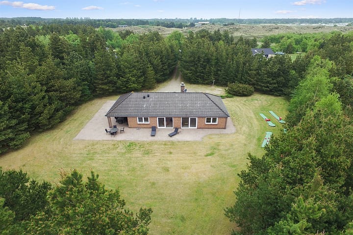 Vakantiehuis is geschikt voor 6 personen en 1 kinderen tot 3 jaar. De vakantiewoning heeft een oppervlakte van 149 m2 en is gebouwd in 1998. Het is toegestaan om 2 huisdieren mee te nemen. De vakantiewoning heft Wasmachine. Wasdroge. Vriezer capaciteit van 60 liter. Er is daarnaast houtkachel. Voor de kleintjes 1 stukken Kinderstoel. Solarium. De vakantiewoning is gelegen op een 2789 m² groot natuural grond. Afstand tot de zee 1000 m. Dichtstbijzijnde winkel 2700 m. Er is een golfbaan op een afstand van 250 m. Gereedschapsruimte. Schommel. Zandbak. Parkeerplaats bij het huis.Er zijn in totaal 3 slaapkamers. De slaapplaatsen zijn als volgt verdeeld: 6 slaapplaatsen in tweepersoonsbedden. Verder is kinderbed ter beschikking.De keuken is uitgerust met koelkast Er is 4 elektrische kookplaten, bakoven, magnetron en vaatwasser. Er is 2 badkamers met douche en 2 toiletten. Er is vloerverwarming in 1 badkamer. De sauna biedt de gelegenheid tot ontspanning.In de vakantiewoning is aanwezig televisie. Video. Stereo-installatie. CD-speler. Tenminste 4 deense zenders. Tenminste 4 duitse zenders.Gratis internet via kabel.