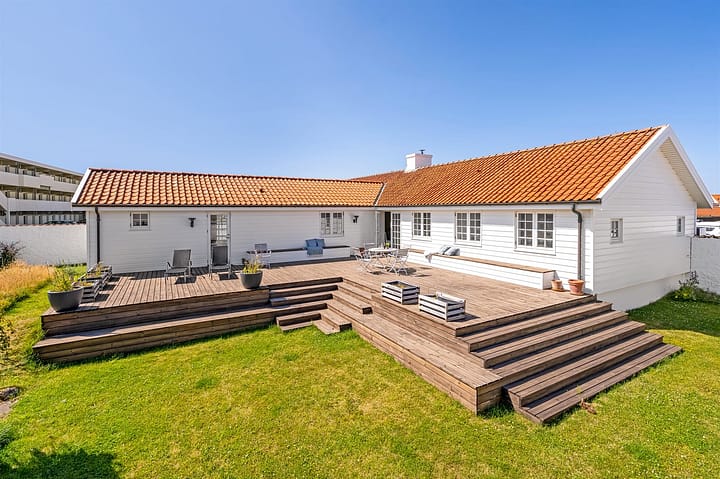 Vakantiehuis is geschikt voor 6 personen. De vakantiewoning heeft een oppervlakte van 170 m2 en is gebouwd in 1976. In 2013 ondergingen de vakantiewoning een gedeeltelijke renovatie. Het is toegestaan om 1 huisdieren mee te nemen. De vakantiewoning heft Wasmachine. Wasdroge. Vriezer capaciteit van 100 liter. Er is daarnaast houtkachel.De vakantiewoning is gelegen op een 837 m² groot aangelegde tuin. De grond is omheind. Afstand tot de zee 200 m. Dichtstbijzijnde winkel 50 m. Er is een golfbaan op een afstand van 6000 m. Bij de vakantiewoning hoort 150 m² terras. Gereedschapsruimte. Barbecue. Parkeerplaats bij het huis. Er is geen privéparkeergelegenheid bij het huis, alleen openbare parkeerplaatsen.Er zijn in totaal 3 slaapkamers. De slaapplaatsen zijn als volgt verdeeld: 6 slaapplaatsen in tweepersoonsbedden. De keuken is uitgerust met amerikaanse koelkast Es is 4 gaspitten, heteluchtoven, magnetron en vaatwasser. Er is 2 badkamers met douchehok en 3 toiletten, waarvan 1 gastentoilet. Er is vloerverwarming in 2 van de badkamers.. Badkuip. 1 Smart-tv. Tenminste 4 deense zenders. 1-3 sweedse zenders. 1-3 noorse zenders. 1-3 duitse zenders. Draadloos internet.