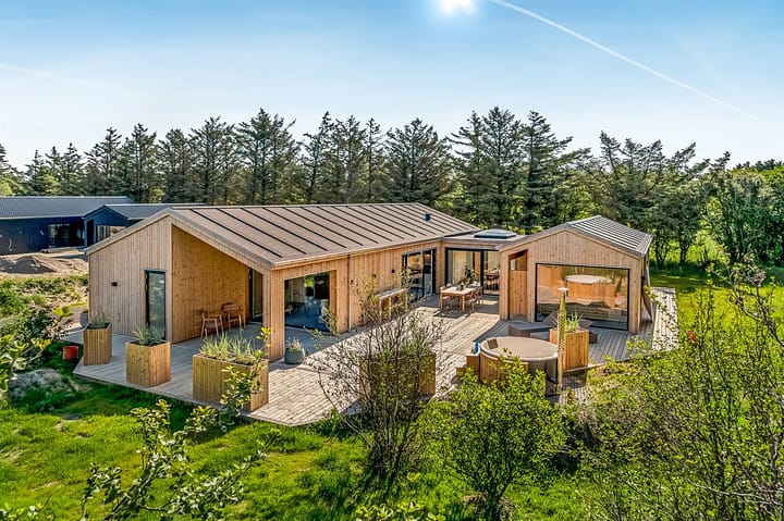 Vakantiehuis is geschikt voor 10 personen. 2 van de slaapplaatsen is alleen geschikt voor grotere kinderen (4-11 jaar). De vakantiewoning heeft een oppervlakte van 180 m2 en is gebouwd in 2025. Het is toegestaan om 2 huisdieren mee te nemen. De vakantiewoning is uitgerust met een energiezuinige lucht-naar-water-warmtepomp. Er is vloerverwarming in het hele huis. De vakantiewoning heft Wasmachine. Wasdroge. Vriezer capaciteit van 150 liter. De vakantiewoning is gelegen op een 1400 m² groot natuural grond. Afstand tot de zee 900 m. Dichtstbijzijnde winkel 1500 m. Bij de vakantiewoning hoort terras. Daarnaast is er een overdekt terras. Tevens heeft u de beschikking over een serre. Buitensauna. Buitendouche. Barbecue. Parkeerplaats bij het huis.Activiteitenruimte. Pooltafe. Dart. Tafelvoetbal. Er zijn in totaal 5 slaapkamers. De slaapplaatsen zijn als volgt verdeeld: 6 slaapplaatsen in tweepersoonsbedden. 2 slaapplaatsen in eenpersoonsbedden. 2 slaapplaatsen in slaapbanken (tweepersoons). 2 van deze slaapplaatsen bevinden zich in de bijgebouw.De keuken is uitgerust met koelkast Er is 4 inductiekookplaten, heteluchtoven, magnetron en vaatwasser. Er is 2 badkamers met douchehok en 2 toiletten. Er is vloerverwarming in 2 van de badkamers.Het buiten hot tub biedt ontspanning aan 5 personen.In de vakantiewoning is aanwezig televisie.1 Chromecast. Tenminste 4 deense zenders. Tenminste 4 zweedse zenders. Tenminste 4 duitse zenders. Draadloos internet.