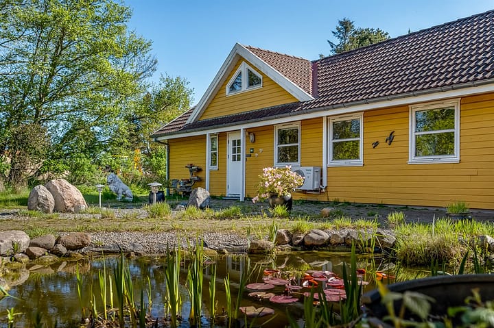 Vakantiehuis is geschikt voor 8 personen. De vakantiewoning heeft een oppervlakte van 116 m2 en is gebouwd in 1998. In 2010 ondergingen de vakantiewoning een gedeeltelijke renovatie. Het is toegestaan om 2 huisdieren mee te nemen. De vakantiewoning is uitgerust met 1 lucht-naar-lucht-warmtepomp. Er is Zonne-energie. Vloerverwarming in de gang. De vakantiewoning heft Wasmachine. Wasdroge. Vriezer capaciteit van 40 liter. Er is daarnaast houtkachel.De vakantiewoning is gelegen op een 1249 m² groot aangelegde tuin. Afstand tot de zee 200 m. Dichtstbijzijnde winkel 800 m. Bij de vakantiewoning hoort terras. Daarnaast is er een overdekt terras. Gasbarbecue ter beschikking. Parkeerplaats bij het huis.Er zijn in totaal 4 slaapkamers. De slaapplaatsen zijn als volgt verdeeld: 8 slaapplaatsen in tweepersoonsbedden.De keuken is uitgerust met koelkast Er is 4 elektrische kookplaten, heteluchtoven, magnetron en vaatwasser. Er is 1 badkamer met douchehok en 2 toiletten, waarvan 1 gastentoilet. Er is vloerverwarming in 1 badkamer. De sauna biedt de gelegenheid tot ontspanning.In de vakantiewoning is aanwezig televisie.1 Chromecast. Geen tv-kanalen – alleen streaming. Draadloos internet.