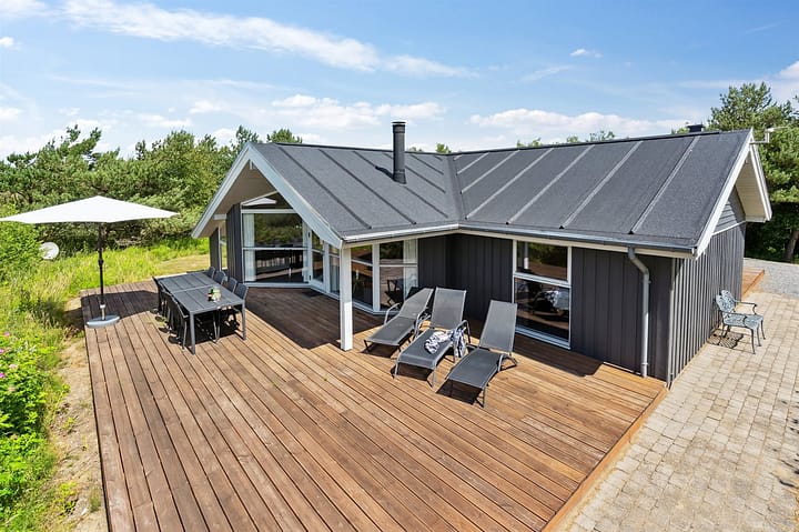Vakantiehuis is geschikt voor 8 personen en 1 kinderen tot 3 jaar. De vakantiewoning heeft een oppervlakte van 100 m2 en is gebouwd in 2007. Het is toegestaan om 1 huisdieren mee te nemen. De vakantiewoning is uitgerust met warmtepomp. De vakantiewoning heft Wasmachine. Wasdroge. Vriezer capaciteit van 90 liter. Er is daarnaast houtkachel.De vakantiewoning is gelegen op een 2900 m² groot natuural grond. Afstand tot de zee 2400 m. Dichtstbijzijnde winkel 4400 m. Bij de vakantiewoning hoort 68 m² terras. Daarnaast is er een 24 m² groot overdekt terras. Gereedschapsruimte. Schommel. Zandbak. Parkeerplaats bij het huis.Er zijn in totaal 3 slaapkamers. De slaapplaatsen zijn als volgt verdeeld: 4 slaapplaatsen in tweepersoonsbedden. 2 slaapplaatsen in eenpersoonsbedden. 2 slaapplaatsen in alkoof. Verder is kinderbed ter beschikking.De keuken is uitgerust met koelkast Er zijn 4 keramische kookplaten, heteluchtoven, magnetron en vaatwasser. Er is 2 badkamers met douche en 2 toiletten. Er is vloerverwarming in 2 van de badkamers. De sauna biedt de gelegenheid tot ontspanning.Het binnenbubbelbad (vulwater) biedt ontspanning aan 2 personen.In de vakantiewoning is aanwezig televisie. DVD-speler. Stereo-installatie. CD-speler. Tenminste 4 deense zenders. Tenminste 4 duitse zenders. Draadloos internet.