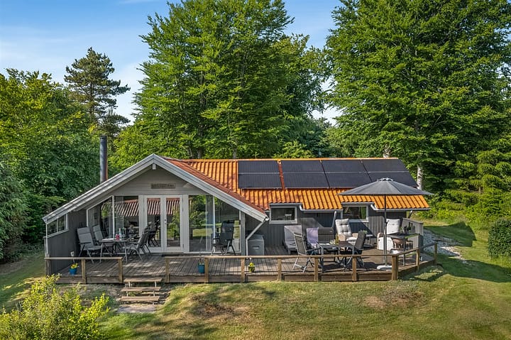 Vakantiehuis is geschikt voor 6 personen. De vakantiewoning heeft een oppervlakte van 71 m2 en is gebouwd in 1994. In 2018 ondergingen de vakantiewoning een gedeeltelijke renovatie. Het is niet toegestaan om huisdieren mee te nemen. De vakantiewoning is uitgerust met warmtepomp. Er is Zonne-energie. Vloerverwarming in alle stenen vloeren. De vakantiewoning heft Wasmachine. Wasdroge. Vriezer capaciteit van 40 liter. Er is daarnaast houtkachel.De vakantiewoning is gelegen op een 1535 m² groot natuural grond. Afstand tot de zee 12000 m. Dichtstbijzijnde winkel 600 m. Bij de vakantiewoning hoort 45 m² terras. Daarnaast is er een 12 m² groot overdekt terras. Schommel. Zandbak. Het huis heeft een stopcontact voor het opladen van een elektrische auto. Met 11 kW-laadvermogen. Parkeerplaats bij het huis.Er zijn in totaal 3 slaapkamers. De slaapplaatsen zijn als volgt verdeeld: 4 slaapplaatsen in tweepersoonsbedden. 2 slaapplaatsen in stapelbed.De keuken is uitgerust met koelkast Er zijn 4 keramische kookplaten, mini-oven, heteluchtoven, magnetron en vaatwasser. Er is 1 badkamer met douchehok en 1 toilet.. Er is vloerverwarming in 1 badkamer. De sauna biedt de gelegenheid tot ontspanning.Het binnenbubbelbad (vulwater) biedt ontspanning aan 2 personen.In het vakantiehuis zijn er 3 tv’s. In de woonkamer worden tv-kanalen gestreamd via de geïnstalleerde Yousee-app. 2 van de slaapkamers hebben een tv met Chromecast, waarbij het mogelijk is om vanaf eigen apparaten te streamen. Bluray-speler. Radio. CD-speler. Draadloos internet.
