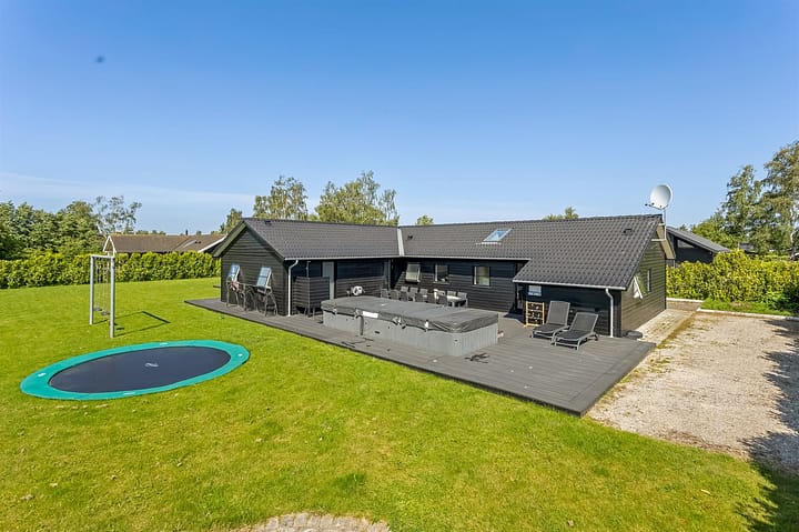 Vakantiehuis is geschikt voor 14 personen. De vakantiewoning heeft een oppervlakte van 180 m2 en is gebouwd in 2019. Het is niet toegestaan om huisdieren mee te nemen. De vakantiewoning is uitgerust met een energiezuinige lucht-naar-water-warmtepomp. Er is vloerverwarming in het hele huis. De vakantiewoning heft Wasmachine. Wasdroge. Vriezer capaciteit van 60 liter. Er is daarnaast houtkachel. Voor de kleintjes 2 stukken Kinderstoel. Verschoningstafel.De vakantiewoning is gelegen op een 1216 m² groot aangelegde tuin. Afstand tot de zee 500 m. Er is een zwemsteiger in de buurt. Dichtstbijzijnde winkel 200 m. Er is een golfbaan op een afstand van 1000 m. Bij de vakantiewoning hoort terras. Daarnaast is er een overdekt terras. Schommel. Trampoline. Voetbaldoel.Vuurplaats. Buitendouche. U kunt buiten een maaltijd bereiden in de buitenkeuken. Barbecue. Parkeerplaats bij het huis.Activiteitenruimte. Biljart. Pooltafe. Tafeltennis. Tafelvoetbal. Er zijn in totaal 6 slaapkamers. De slaapplaatsen zijn als volgt verdeeld: 8 slaapplaatsen in tweepersoonsbedden. 4 slaapplaatsen in eenpersoonsbedden. 2 slaapplaatsen in alkoof. 2 van deze slaapplaatsen bevinden zich in de huiskamer.De keuken is uitgerust met 2 koelkasten Er is 4 inductiekookplaten, heteluchtoven, magnetron en vaatwasser. Er is 3 badkamers met douche en 3 toiletten. Er is vloerverwarming in 3 van de badkamers. De sauna biedt de gelegenheid tot ontspanning.Het binnenbubbelbad (vulwater) biedt ontspanning aan 2 personen.Het buitenbubbelbad (standwater) biedt ontspanning aan 5 personen.In de vakantiewoning zijn 2 smart-tv’s aanwezig. Playstation4. Tenminste 4 deense zenders. 1-3 sweedse zenders. 1-3 noorse zenders. 1-3 duitse zenders. Draadloos internet.