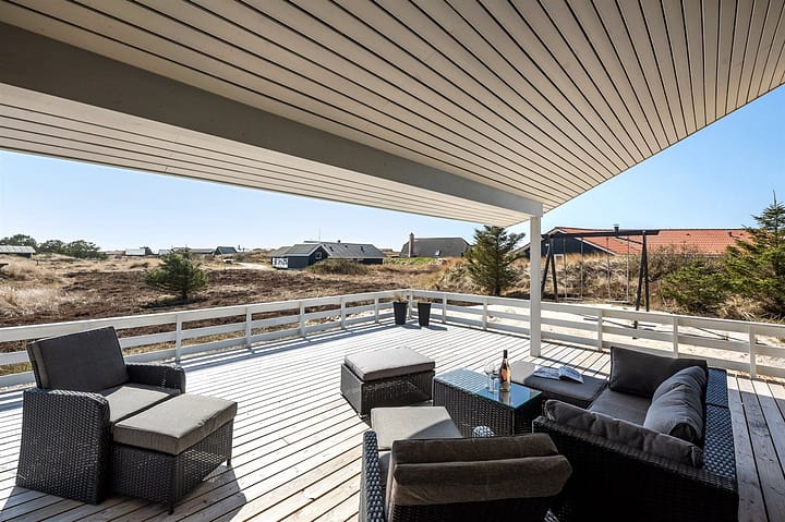 Vakantiehuis is geschikt voor 8 personen en 2 kinderen tot 3 jaar. De vakantiewoning heeft een oppervlakte van 133 m2 en is gebouwd in 2020. Het is toegestaan om 2 huisdieren mee te nemen. De vakantiewoning is uitgerust met warmtepomp. De vakantiewoning heft Wasmachine. Wasdroge. Vriezer capaciteit van 80 liter. Er is daarnaast houtkachel. Voor de kleintjes 2 stukken Kinderstoel.De vakantiewoning is gelegen op een 1274 m² groot natuural grond. Afstand tot de zee 900 m. Dichtstbijzijnde winkel 500 m. Bij de vakantiewoning hoort 91 m² beschut terras. Waarvan 24 m² is er een overdekt terras. Schommel. Parkeerplaats bij het huis.Activiteitenruimte. Biljart.Dart. Er zijn in totaal 3 slaapkamers. De slaapplaatsen zijn als volgt verdeeld: 6 slaapplaatsen in tweepersoonsbedden.2 slaapplaatsen in verstelbaar bedden. 2 van deze slaapplaatsen bevinden zich in de open slaapzolder. Verder sijn ook 2 stukken kinderbed ter beschikking.De keuken is uitgerust met koelkast Er zijn 4 keramische kookplaten, heteluchtoven, magnetron en vaatwasser. Vloerverwarming in de keuken. Er is 2 badkamers met douchehok en 2 toiletten. Er is vloerverwarming in 2 van de badkamers. De sauna biedt de gelegenheid tot ontspanning.Het binnenbubbelbad (vulwater) biedt ontspanning aan 2 personen.In de vakantiewoning is aanwezig 3 smart-tv. DVD-speler. Radio. CD-speler. Playstation4. Tenminste 4 deense zenders. Tenminste 4 duitse zenders. Draadloos internet.
