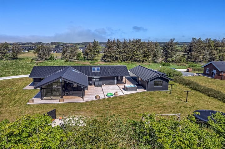 Vakantiehuis is geschikt voor 10 personen en 1 kinderen tot 3 jaar. De vakantiewoning heeft een oppervlakte van 139 m2 en is gebouwd in 2020. Het is niet toegestaan om huisdieren mee te nemen. De vakantiewoning is uitgerust met warmtepomp. Er is vloerverwarming in het hele huis. De vakantiewoning heft Wasmachine. Wasdroge. Vriezer capaciteit van 90 liter. Voor de kleintjes 2 stukken Kinderstoel.De vakantiewoning is gelegen op een 1901 m² groot natuural grond. Afstand tot de zee 700 m. Dichtstbijzijnde winkel 6000 m. Bij de vakantiewoning hoort 220 m² terras. Daarnaast is er een 39 m² groot overdekt terras. Gereedschapsruimte. Schommel. Zandbak. Trampoline. Buitenspelen. Barbecue. Het huis heeft een stopcontact voor het opladen van een elektrische auto. Parkeerplaats bij het huis.Activiteitenruimte. Biljart.Tafeltennis. Dart. Airhockey. Er zijn in totaal 4 slaapkamers. De slaapplaatsen zijn als volgt verdeeld: 8 slaapplaatsen in tweepersoonsbedden.2 slaapplaatsen op matrassen. 2 van deze slaapplaatsen bevinden zich in de open slaapzolder. Verder is kinderbed ter beschikking.De keuken is uitgerust met 2 koelkasten. (Extra koelkast ter beschikking). Er is 4 inductiekookplaten, heteluchtoven, magnetron en vaatwasser. Er is 2 badkamers met douchehok en 2 toiletten. Er is vloerverwarming in 2 van de badkamers.Het buitenbubbelbad (standwater) biedt ontspanning aan 5 personen.In de vakantiewoning is aanwezig 2 televisies. Radio. Playstation4. Tenminste 4 deense zenders. 1-3 sweedse zenders. 1-3 noorse zenders. Tenminste 4 duitse zenders. 1-3 engelse zenders. Draadloos internet.Vakantiehuis is geschikt voor 10 personen en 1 kinderen tot 3 jaar. De vakantiewoning heeft een oppervlakte van 139 m2 en is gebouwd in 2020. Het is niet toegestaan om huisdieren mee te nemen. De vakantiewoning is uitgerust met warmtepomp. Er is vloerverwarming in het hele huis. De vakantiewoning heft Wasmachine. Wasdroge. Vriezer capaciteit van 90 liter. Voor de kleintjes 2 stukken Kinderstoel.De vakantiewoning is gelegen op een 1901 m² groot natuural grond. Afstand tot de zee 700 m. Dichtstbijzijnde winkel 6000 m. Bij de vakantiewoning hoort 220 m² terras. Daarnaast is er een 39 m² groot overdekt terras. Gereedschapsruimte. Schommel. Zandbak. Trampoline. Buitenspelen. Barbecue. Het huis heeft een stopcontact voor het opladen van een elektrische auto. Parkeerplaats bij het huis.Activiteitenruimte. Biljart.Tafeltennis. Dart. Airhockey. Er zijn in totaal 4 slaapkamers. De slaapplaatsen zijn als volgt verdeeld: 8 slaapplaatsen in tweepersoonsbedden.2 slaapplaatsen op matrassen. 2 van deze slaapplaatsen bevinden zich in de open slaapzolder. Verder is kinderbed ter beschikking.De keuken is uitgerust met 2 koelkasten. (Extra koelkast ter beschikking). Er is 4 inductiekookplaten, heteluchtoven, magnetron en vaatwasser. Er is 2 badkamers met douchehok en 2 toiletten. Er is vloerverwarming in 2 van de badkamers.In de vakantiewoning is aanwezig 2 televisies. Radio. Playstation4. Tenminste 4 deense zenders. 1-3 sweedse zenders. 1-3 noorse zenders. Tenminste 4 duitse zenders. 1-3 engelse zenders. Draadloos internet.