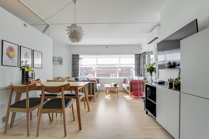 Vakantieappartement. is geschikt voor 4 personen. De vakantiewoning heeft een oppervlakte van 63 m2 en is gebouwd in 1985. Het is niet toegestaan om huisdieren mee te nemen. De vakantiewoning is uitgerust met warmtepomp. De vakantiewoning heft Wasmachine. Vriezer capaciteit van 87 liter. Afstand tot de zee 100 m. Dichtstbijzijnde winkel 1300 m. Bij de vakantiewoning hoort 3 m² terras. Daarnaast is er een 9 m² groot overdekt terras. Parkeerplaats bij het huis.Er zijn in totaal 2 slaapkamers. De slaapplaatsen zijn als volgt verdeeld: 2 slaapplaatsen in eenpersoonsbedden.2 slaapplaatsen in verstelbaar bedden.1 slaapplaats in slaapbank (eenpersoons).De keuken is uitgerust met koelkast Er is 4 inductiekookplaten, heteluchtoven, magnetron en vaatwasser. Er is 1 badkamer met douchehok en 1 toilet.. Er is vloerverwarming in 1 badkamer.In de vakantiewoning is aanwezig televisie. 1-3 deense zenders. 1-3 duitse zenders. Draadloos internet.