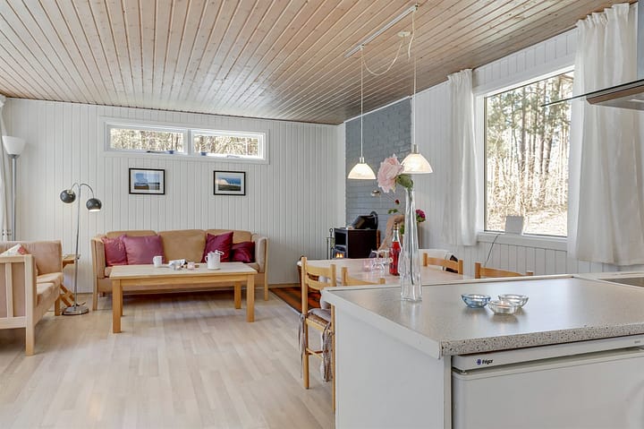 Vakantiehuis is geschikt voor 6 personen. 2 van de slaapplaatsen is alleen geschikt voor grotere kinderen (4-11 jaar). De vakantiewoning heeft een oppervlakte van 75 m2 en is gebouwd in 1974. In 2019 ondergingen de vakantiewoning een gedeeltelijke renovatie. Het is niet toegestaan om huisdieren mee te nemen. De vakantiewoning heft Wasmachine. Vriezer capaciteit van 35 liter. Er is daarnaast houtkachel.De vakantiewoning is gelegen op een 2500 m² groot natuural grond. Afstand tot de zee 700 m. Dichtstbijzijnde winkel 4000 m. Er is een golfbaan op een afstand van 700 m. Bij de vakantiewoning hoort 32 m² terras. Bij de vakantiewoning hoort terras en overdekt terras. Daarnaast is er een 11 m² groot overdekt terras. Gereedschapsruimte. Buitendouche. Carport ter beschikking. Parkeerplaats bij het huis.Er zijn in totaal 3 slaapkamers. De slaapplaatsen zijn als volgt verdeeld: 4 slaapplaatsen in tweepersoonsbedden. 2 slaapplaatsen in stapelbed.De keuken is uitgerust met koelkast Er zijn 4 keramische kookplaten, heteluchtoven, magnetron en vaatwasser. Er is 1 badkamer met douchehok en 2 toiletten, waarvan 1 gastentoilet De sauna biedt de gelegenheid tot ontspanning.In de vakantiewoning is aanwezig televisie. DVD-speler. Radio. Stereo-installatie. CD-speler. Tenminste 4 deense zenders. 1-3 sweedse zenders. 1-3 noorse zenders. Tenminste 4 duitse zenders. Draadloos internet.