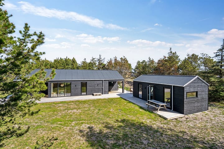 Vakantiehuis is geschikt voor 10 personen. De vakantiewoning heeft een oppervlakte van 120 m2 en is gebouwd in 2022. Het is niet toegestaan om huisdieren mee te nemen. De vakantiewoning is uitgerust met een energiezuinige lucht-naar-lucht-warmtepomp. De vakantiewoning is uitgerust met warmtepomp. De vakantiewoning heft Wasmachine. Wasdroge. Vriezer capaciteit van 60 liter. Er is daarnaast houtkachel.De vakantiewoning is gelegen op een 2500 m² groot natuural grond. Afstand tot de zee 500 m. Dichtstbijzijnde winkel 400 m. Bij de vakantiewoning hoort terras. Daarnaast is er een overdekt terras. Schommel. Buitendouche. Barbecue. Parkeerplaats bij het huis.Er zijn in totaal 5 slaapkamers. De slaapplaatsen zijn als volgt verdeeld: 10 slaapplaatsen in tweepersoonsbedden. 1 slaapplaatsen in stapelbedden. 1 slaapplaats in alkoof. 4 van deze slaapplaatsen bevinden zich in de bijgebouw en 1 in de huiskamer.De keuken is uitgerust met koelkast Er is 4 inductiekookplaten, heteluchtoven en vaatwasser. Er is 2 badkamers met douchehok en 2 toiletten. Er is vloerverwarming in 1 badkamer.In de vakantiewoning is aanwezig 1 smart-tv. Geen tv-kanalen – alleen streaming. Draadloos internet.