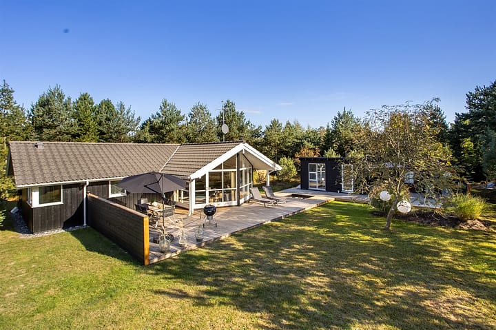 Vakantiehuis is geschikt voor 8 personen en 1 kinderen tot 3 jaar. 2 van de slaapplaatsen is alleen geschikt voor grotere kinderen (4-11 jaar). De vakantiewoning heeft een oppervlakte van 106 m2 en is gebouwd in 2004. Het is niet toegestaan om huisdieren mee te nemen. De vakantiewoning is uitgerust met energiezuinige lucht-naar-lucht-warmtepomp. De vakantiewoning heft Wasmachine. Er is daarnaast houtkachel. Voor de kleintjes 1 stukken Kinderstoel.De vakantiewoning is gelegen op een 1273 m² groot natuural grond. Afstand tot de zee 900 m. Bij de vakantiewoning hoort terras.Vuurplaats. Buitensauna. Barbecue. Het huis heeft een stopcontact voor het opladen van een elektrische auto. Oplaadstekker type 2. Parkeerplaats bij het huis.Er zijn in totaal 3 slaapkamers. De slaapplaatsen zijn als volgt verdeeld: 6 slaapplaatsen in tweepersoonsbedden.2 slaapplaatsen op matrassen. 2 van deze slaapplaatsen bevinden zich in de bijgebouw en 2 in de open slaapzolder. Verder is kinderbed ter beschikking.De keuken is uitgerust met koelkast Er zijn 4 keramische kookplaten, heteluchtoven, magnetron en vaatwasser. Er is 1 badkamer met douchehok en 1 toilet.. Er is vloerverwarming in 1 badkamer.Het binnenbubbelbad (vulwater) biedt ontspanning aan 2 personen. 1 Smart-tv.Tv via streaming. 1-3 deense zenders. Draadloos internet.