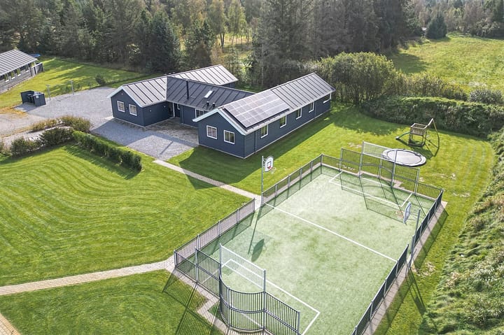 Vakantiehuis is geschikt voor 24 personen. De vakantiewoning heeft een oppervlakte van 315 m2 en is gebouwd in 2019. Het is toegestaan om 2 huisdieren mee te nemen. De vakantiewoning is uitgerust met een energiezuinige lucht-naar-water-warmtepomp. De vakantiewoning heft Wasmachine. Wasdroge. Vriezer capaciteit van 100 liter. Er is daarnaast houtkachel. Voor de kleintjes 1 stukken Kinderstoel.De vakantiewoning is gelegen op een 2136 m² groot natuural grond. Afstand tot de zee 350 m. Dichtstbijzijnde winkel 1000 m. Er is een golfbaan op een afstand van 7000 m. Bij de vakantiewoning hoort terras. Daarnaast is er een overdekt terras. Schommel. Zandbak. Trampoline. Speeltoren. Glijbaan. Voetbaldoel. Barbecue. Het huis heeft een stopcontact voor het opladen van een elektrische auto. Oplaadstekker type 2. Met 11 kW-laadvermogen. Parkeerplaats bij het huis.Het binnenzwembad biedt de gelegenheid om heerlijk te spelen en gezellig samen te zijn.Het binnenzwembad heeft een tegenstroominstallatie. Er is een waterglijbaan. Er is vloerverwarming in het zwembadgebied.Activiteitenruimte. Biljart.Tafeltennis. Dart. Tafelvoetbal. Er zijn in totaal 9 slaapkamers. De slaapplaatsen zijn als volgt verdeeld: 24 slaapplaatsen in eenpersoonsbedden. 6 van deze slaapplaatsen bevinden zich in de open slaapzolder. Verder is kinderbed ter beschikking.De keuken is uitgerust met 2 koelkasten Er is 8 inductiekookplaten, heteluchtoven, magnetron en vaatwasser. Er is 4 badkamers met douchehok en 4 toiletten. Er is vloerverwarming in 4 van de badkamers. De sauna biedt de gelegenheid tot ontspanning.Het binnenbubbelbad (vulwater) biedt ontspanning aan 4 personen.Het buitenbubbelbad (vulwater) biedt ontspanning aan 4 personen.In de vakantiewoning is aanwezig 3 televisies. Playstation4. Tenminste 4 deense zenders. Draadloos internet.