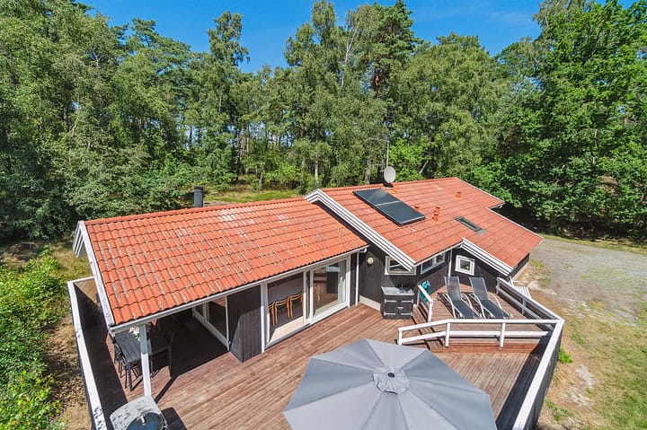 Vakantiehuis is geschikt voor 10 personen. De vakantiewoning heeft een oppervlakte van 117 m2 en is gebouwd in 1999. Het is niet toegestaan om huisdieren mee te nemen. De vakantiewoning is uitgerust met 1 lucht-naar-lucht-warmtepomp. Er is Zonne-energie. Vloerverwarming in alle stenen vloeren. De vakantiewoning heft Wasmachine. Wasdroge. Vriezer capaciteit van 70 liter. Er is daarnaast houtkachel. Voor de kleintjes 1 stukken Kinderstoel.De vakantiewoning is gelegen op een 2500 m² groot Duingrond. Afstand tot de zee 600 m. Dichtstbijzijnde winkel 4000 m. Er is een golfbaan op een afstand van 150 m. Bij de vakantiewoning hoort terras. Daarnaast is er een overdekt terras. U kunt buiten een maaltijd bereiden in de buitenkeuken. Barbecue. Parkeerplaats bij het huis.Er zijn in totaal 4 slaapkamers. De slaapplaatsen zijn als volgt verdeeld: 8 slaapplaatsen in tweepersoonsbedden. 2 slaapplaatsen in eenpersoonsbedden. 2 van deze slaapplaatsen bevinden zich in de huiskamer.De keuken is uitgerust met koelkast Er is 4 inductiekookplaten, heteluchtoven, magnetron en vaatwasser. Er is 2 badkamers met douchehok en 2 toiletten, waarvan 1 gastentoilet. Er is vloerverwarming in 2 van de badkamers. Er is vloerverwarming in het gastentoilet. De sauna biedt de gelegenheid tot ontspanning.Het binnenbubbelbad (vulwater) biedt ontspanning aan 2 personen.In de vakantiewoning is aanwezig televisie. Tenminste 4 deense zenders. 1-3 duitse zenders. Draadloos internet.