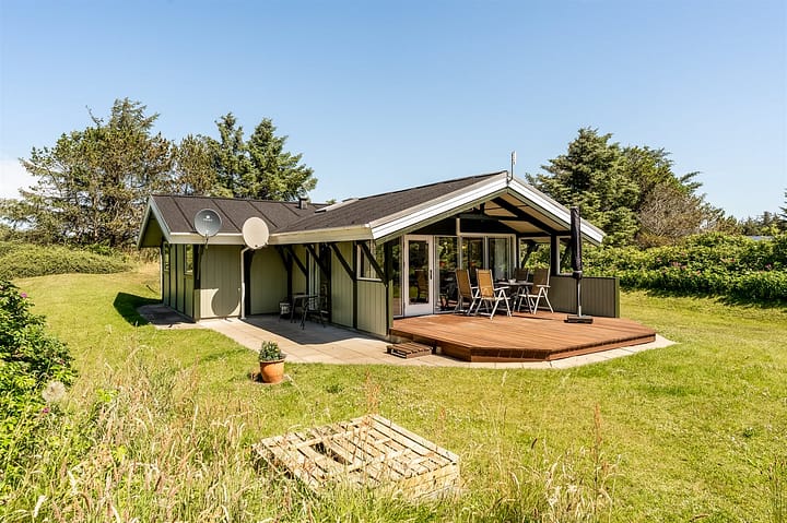 Vakantiehuis is geschikt voor 6 personen en 1 kinderen tot 3 jaar. De vakantiewoning heeft een oppervlakte van 76 m2 en is gebouwd in 1979. In 1995 ondergingen de vakantiewoning een gedeeltelijke renovatie. Het is toegestaan om 1 huisdieren mee te nemen. De vakantiewoning is uitgerust met energiezuinige lucht-naar-lucht-warmtepomp. De vakantiewoning heft Wasmachine. Vriezer capaciteit van 10 liter. Er is daarnaast houtkachel. Voor de kleintjes 1 stukken Kinderstoel.De vakantiewoning is gelegen op een 1100 m² groot natuural grond. Afstand tot de zee 450 m. Dichtstbijzijnde winkel 6000 m. Bij de vakantiewoning hoort 20 m² terras. Daarnaast is er een 10 m² groot overdekt terras. Schommel. Zandbak.Er zijn in totaal 3 slaapkamers. De slaapplaatsen zijn als volgt verdeeld: 2 slaapplaatsen in tweepersoonsbed. 2 slaapplaatsen in eenpersoonsbedden. 2 slaapplaatsen in stapelbed. Verder is kinderbed ter beschikking.De keuken is uitgerust met koelkast Er is 4 elektrische kookplaten, heteluchtoven, magnetron.Er is 1 badkamer met douchehok en 1 toilet.. Er is vloerverwarming in 1 badkamer.In de vakantiewoning is aanwezig televisie. Radio. CD-speler. Tenminste 4 deense zenders. Tenminste 4 duitse zenders. Draadloos internet.
