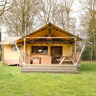 Stap binnen in de De Bos Tent, op een open veld waar het buitenleven centraal staat.
