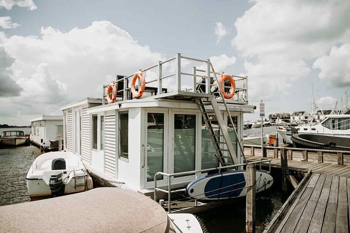 Wat is het genieten aan het water in deze vierpersoons woonboot. Vanaf het dakterras heeft u een prachtig uitzicht op De Loosdrechtse Plassen. U slaapt op het water en geniet van de zonsondergang. Door de vele ramen is de boot heerlijk licht. Pak nog even de laatste zonnestralen mee en geniet van het uitzicht over het water vanuit de hangmat, de sup, kano of het dakterras. De boot heeft verwarming, dus ook in de winter verblijft u hier heerlijk.De gezellige woonkamer met open keuken beschikt over een comfortabele hangstoel. Op het terras voor de boot kunt u heerlijk ontspannen in een hangmat. Ook is er een ruim dakterras. De keuken is uitgerust met onder andere een koelkast met vriesgedeelte, een vierpits kookstel, Nespresso-apparaat, waterkoker en combimagnetron.Er zijn twee slaapkamers met een twijfelaarbed (140×200) en daarnaast een slaapbank. De bedden zijn bij aankomst voor u opgemaakt en er liggen twee handdoeken per persoon klaar. De badkamer is voorzien van een douche en er is een separaat toilet. Uiteraard is er WiFi aanwezig in de woonboot. Parkeren kan in de haven.