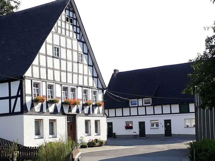 Dit mooie zespersoons vakantiehuis ligt in het rustige kleine dorp Sallinghausen vlakbij Eslohe. Sallinghausen ligt centraal in Sauerland vlakbij de Hennessee.Op de boerderij zijn er veel dieren, die ook geaaid mogen worden. Bijvoorbeeld koeien, kalfjes, katten, hond, kippen, en een pony die ook bereden kan worden. In de directe omgevingen zijn veel wandel- en fietspaden en -routes, zoals bijv. de SauerlandRadring en in de winter kan men veel plezier beleven op de vele pistes die er in Sauerland zijn, maar in de zomer is het ook een fantastisch gebied met veel mogelijkheden. Zo zijn er een paar leuke pretparken, grotten en speeltuinen.Gezellig ingerichte woonkamer met zithoek, eethoek en TV. Goed ingerichte keuken met onder andere een oven, vierpits kookstel, koelkast, waterkoker, magnetron en een filter koffiezetapparaat. Er zijn twee slaapkamers, één met een tweepersoonsbed en één met een tweepersoonsbed en een stapelbed. De badkamer heeft een douche, toilet en wastafel. Het vakantiehuis ligt op de begane grond en heeft een eigen ingang met parkeerplaats direct voor de huisdeur en een heerlijk terras met tuinmeubilair.