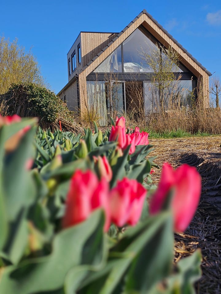 10 meter van jouw terras ligt het eerste tulpenveld. Gelegen op een klein vakantiepark met de voordelen van een fijne speelweide en kleine dieren die vrij rondlopen en toch het idee dat je helemaal alleen bent door het fantastische uitzicht. Af en toe lopen de eenden voorbij of hopt er een haasje door het land. Wat een rust.